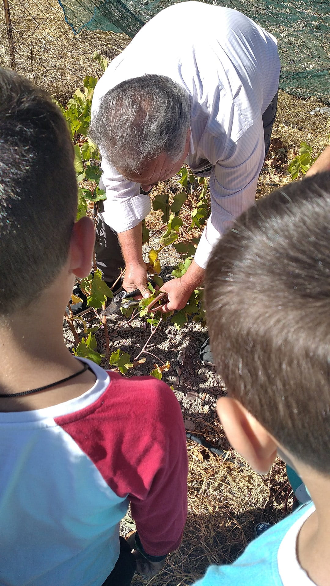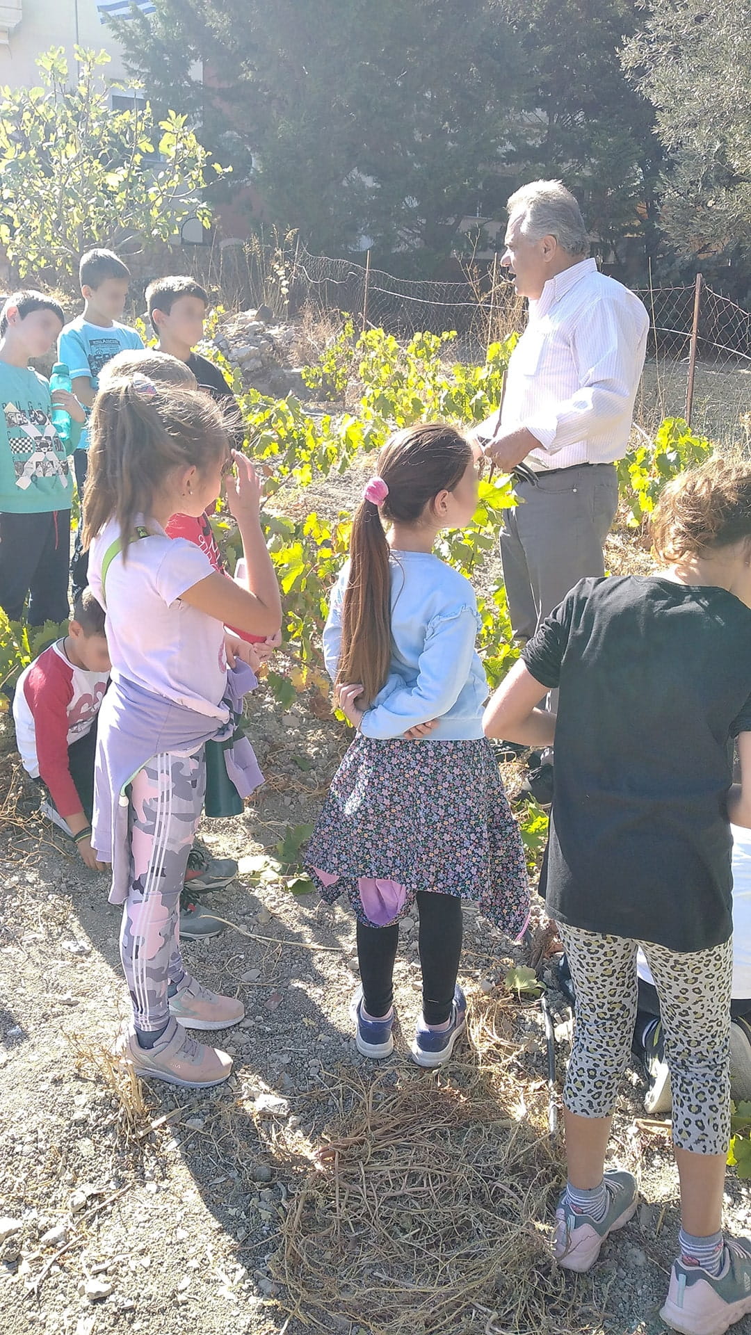 Στα πλαίσια του μαθήματος της Ιστορίας οι μαθητές της Γ΄ τάξης γνώρισαν το θεό Διόνυσο και το αμπέλι. Με την αφορμή αυτή, τη Δευτέρα 24 Οκτωβρίου επισκέφθηκαν τον αμπελώνα του κυρίου Γιάννη, του αμπελουργού. Του πήραν συνέντευξη και εκείνος πρόθυμα απάντησε σε όλες τις ερωτήσεις τους για το αμπέλι και τα μυστικά του. Στο τέλος τους περιέγραψε και τη διαδικασία παραγωγής του κρασιού μιας που είναι και οινοπαραγωγός. Τον ευχαριστούμε πολύ για αυτή την όμορφη επίσκεψη!