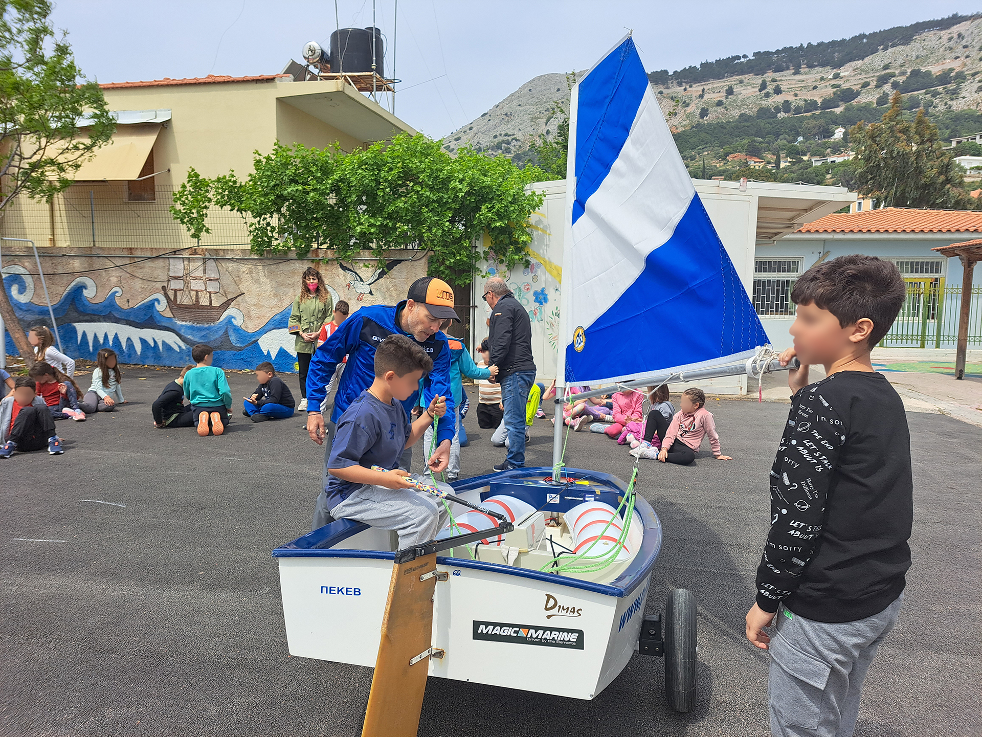 Την Τρίτη 9/5/23 στα πλαίσια της γνωριμίας με τα Ολυμπιακά αθλήματα επισκέφθηκε το σχολείο μας ο προπονητής ιστιοπλοΐας της ΠΕΚΕΒ προκειμένου να μας ενημερώσει για τα οφέλη του αθλήματος και του αθλητισμού γενικότερα. Μετά από την ενημέρωση, απάντησε σε σχετικές ερωτήσεις των παιδιών και ακολούθησε μια επίδειξη σε όπου τα παιδιά είχαν την ευκαιρία να έχουν μια πρώτη επαφή με ένα αγωνιστικό σκάφος.